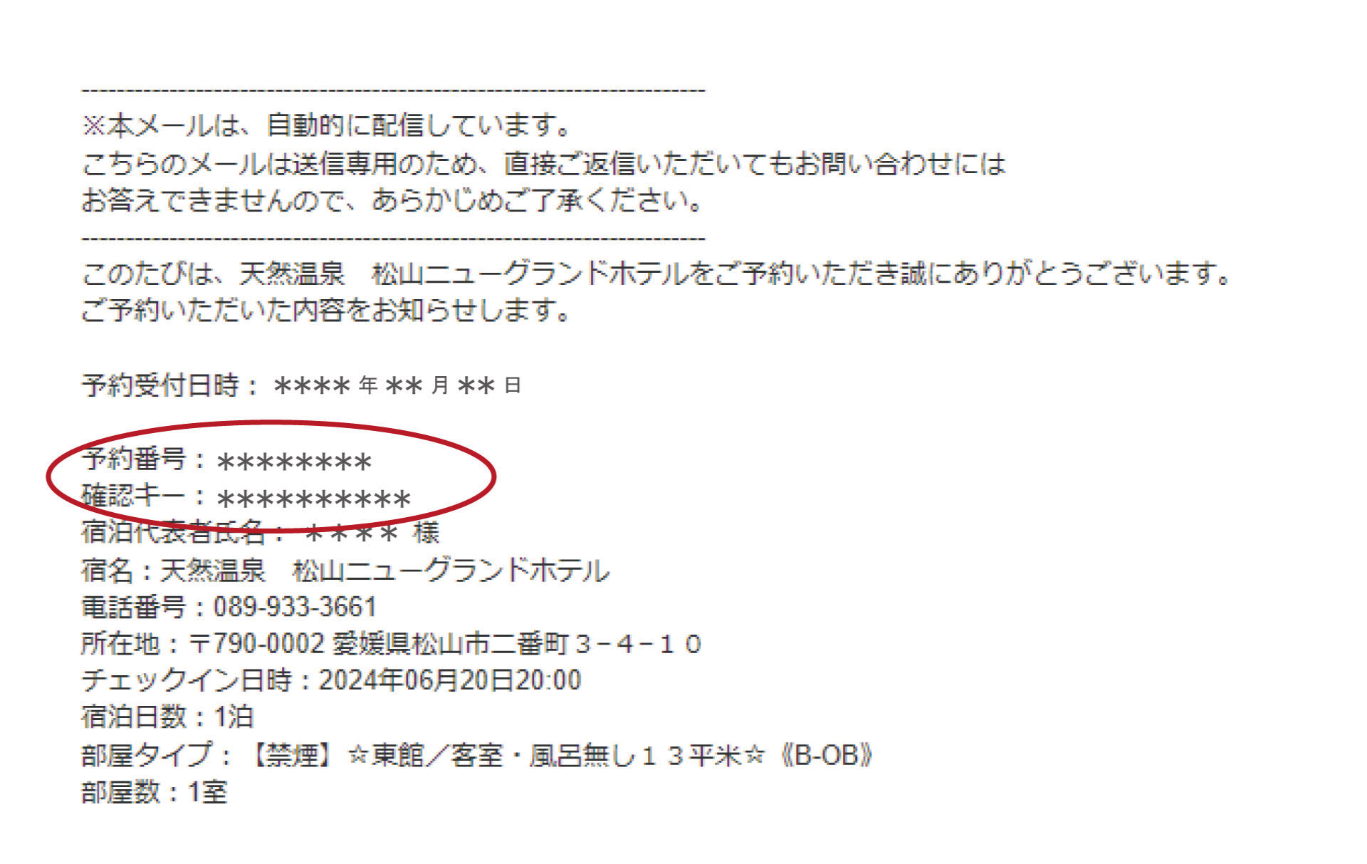 予約確認メールにて「予約番号」と「確認キー」を確認する