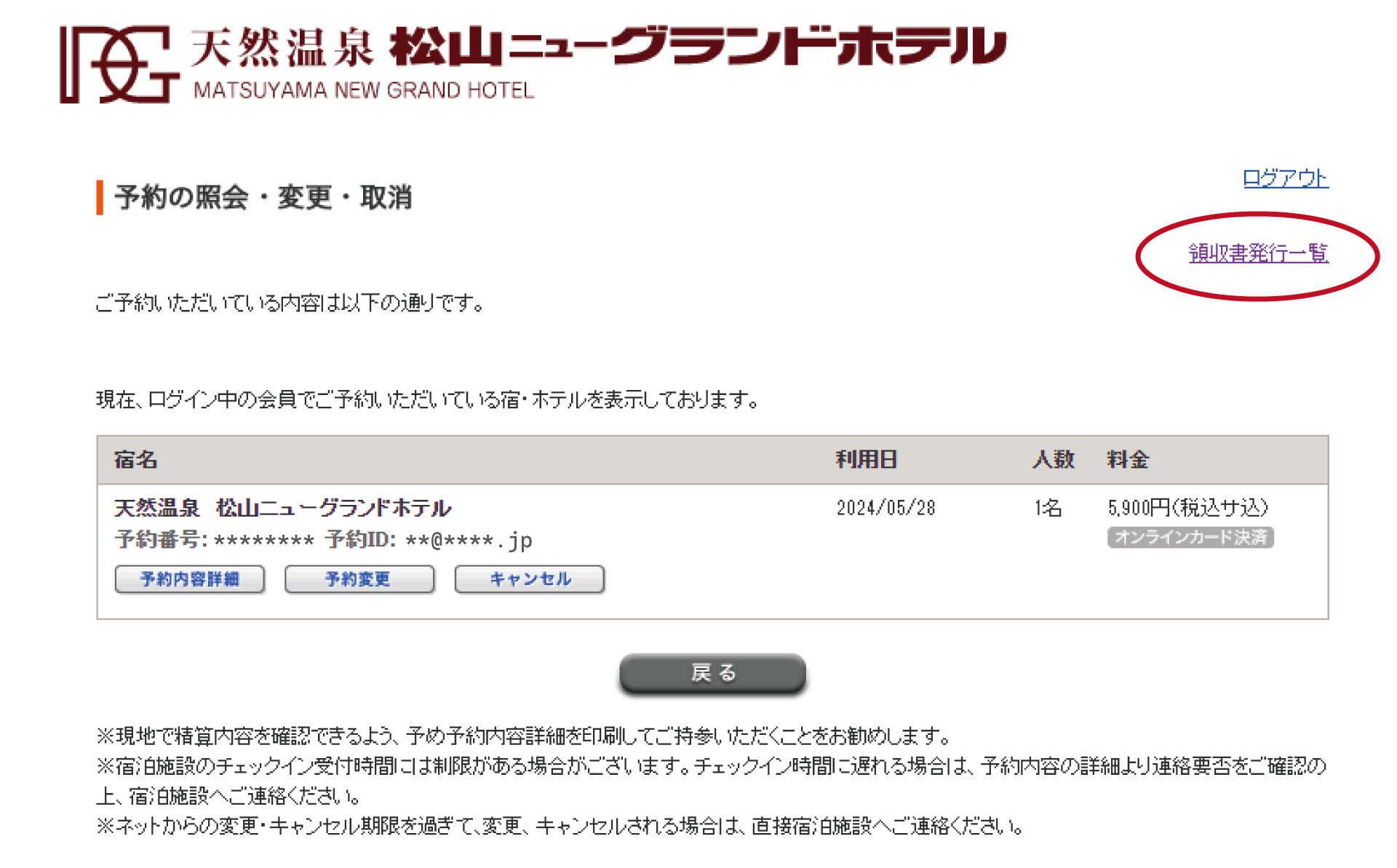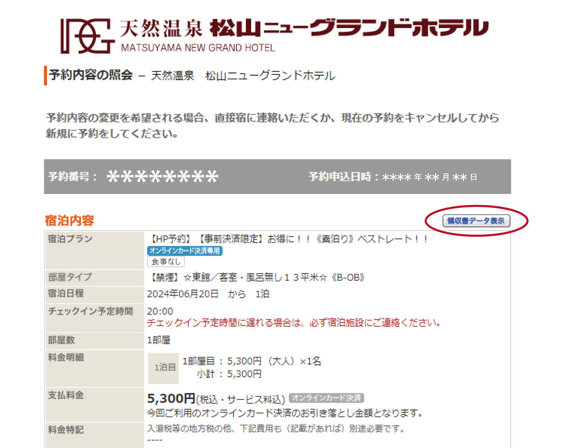 当公式サイトからのご予約でオンラインカード決済をご利用の場合に、領収書データを表示することが可能です。