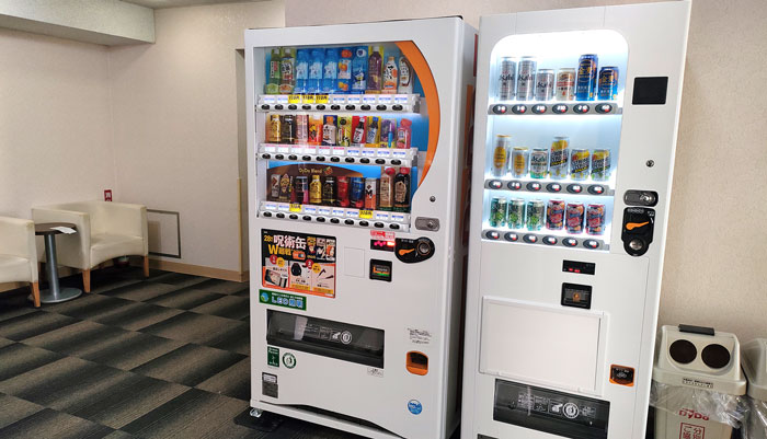 西館の1Fと6F、東館3Fに飲料の自動販売機がございます。西館6Fと東館3Fには、アルコールの自動販売機もございます。