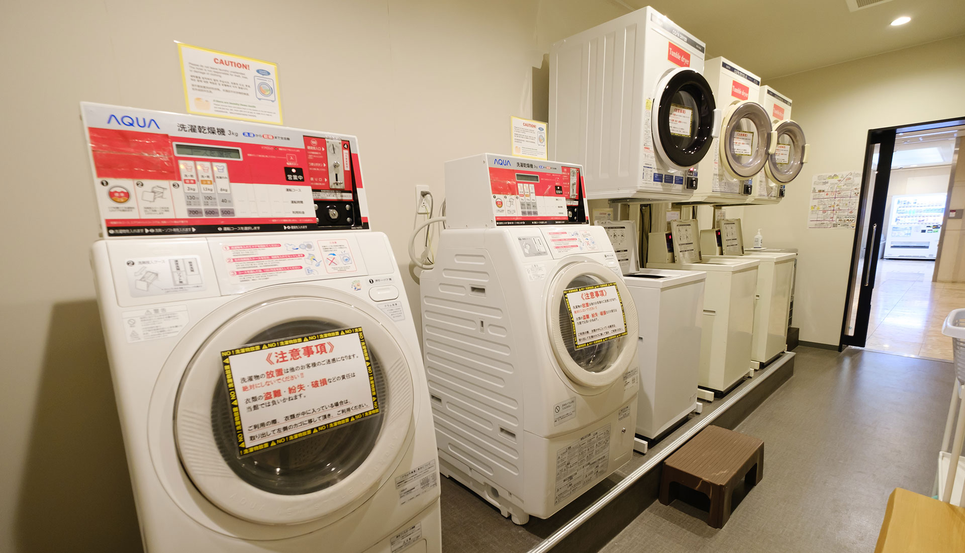 1Fにコインランドリーがございます。連泊や長期のご滞在、スポーツ合宿などにも便利です。