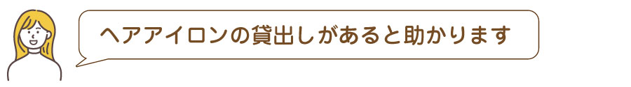 2Wayへアアイロンの無料貸出しを始めました。 フロントスタッフにお声がけくださいませ。 (※数に限りがございます)