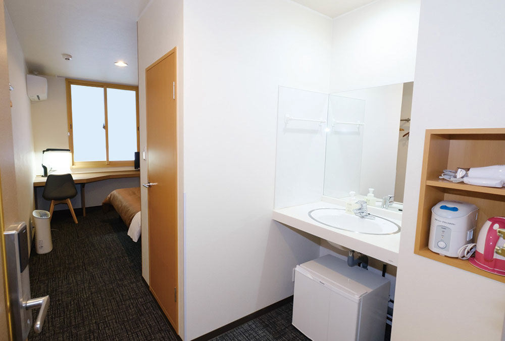 西館シングルが全室リノベーションOPEN致しました!靴を脱いでごゆっくりお寛ぎ頂けるお部屋です。全室に快適な睡眠をご提供するサータベッドを導入、幅121㎝×長さ197㎝の広々セミダブルサイズで朝まで快適にお過ごし頂けます。お部屋着は着心地の良い、セパレートタイプのニットガウンをご用意しております。1室2名様利用のカップルプランもございます。