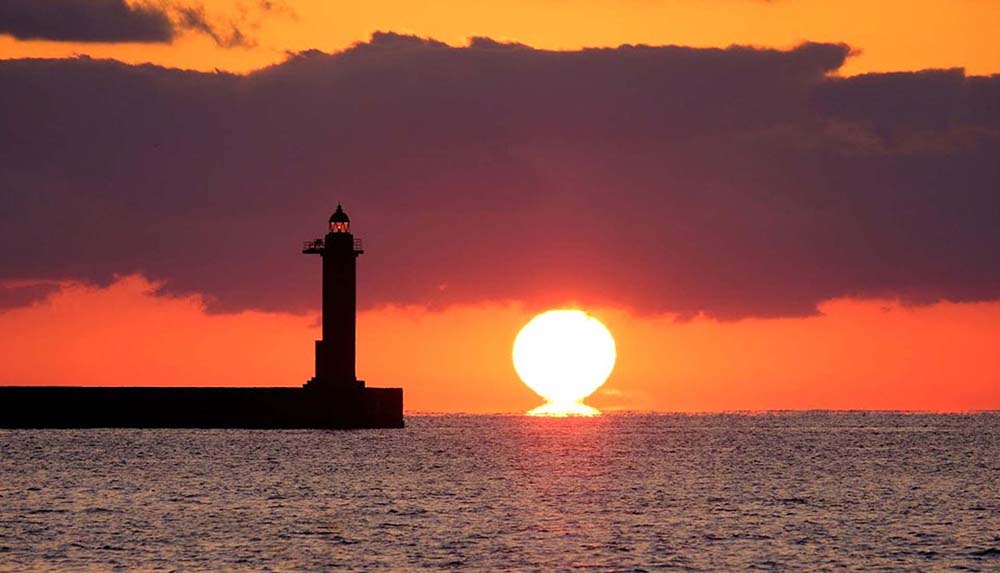 梅津寺は夕日がきれいなスポットです。伊予鉄高浜線の「梅津寺駅」は、ドラマ「東京ラブストーリー」(’91)の舞台になったことで有名です。隣の公園は、梅・桜の名所です。