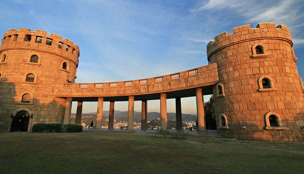 松山市街を一望できる、絶景のビューポイントです。ヨーロッパの古城風の展望台や、ちびっこ広場があります。園内では、季節の草花も楽しめます。(入園無料)